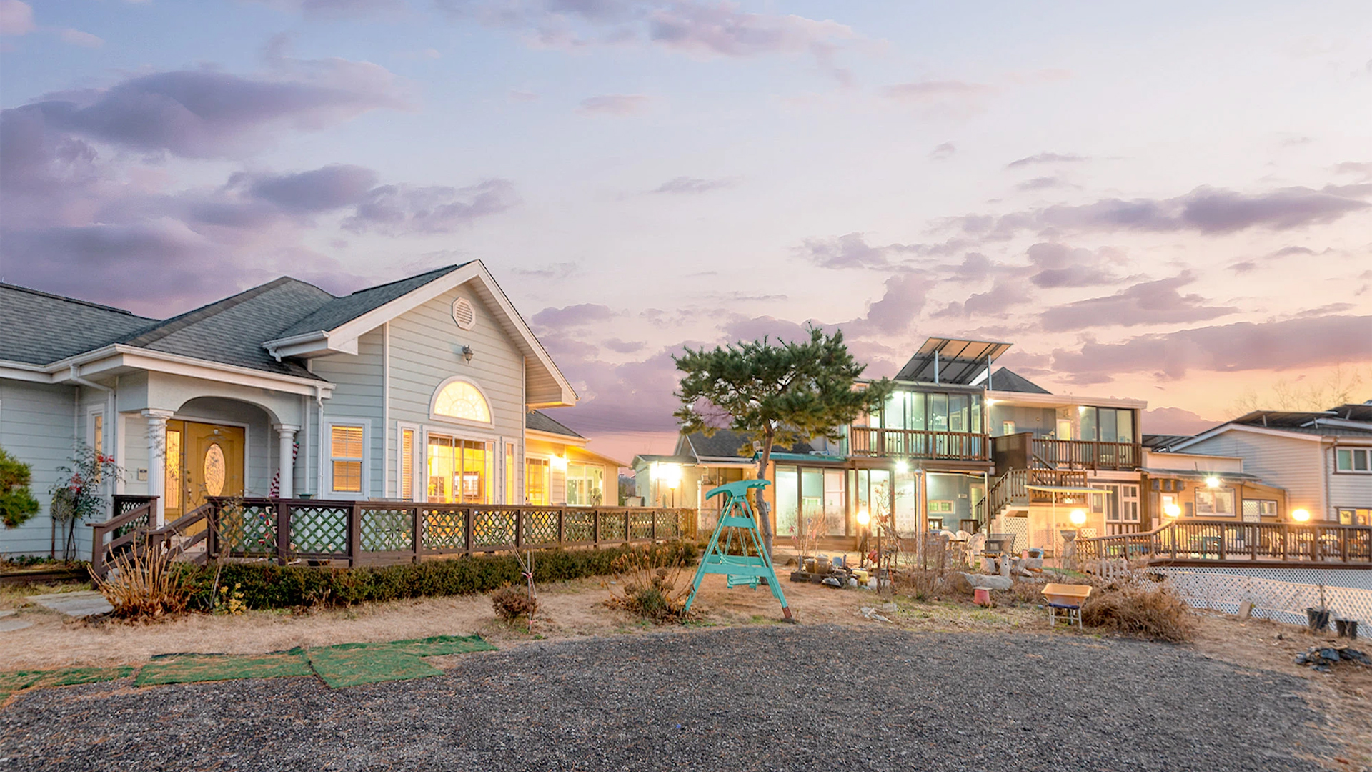 펜션 너머로 보이는 바다와 일몰이 아름다운